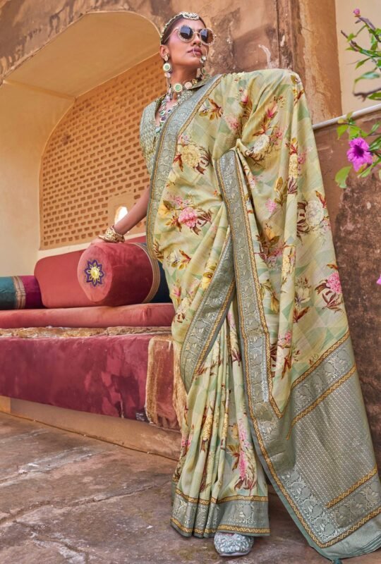 ₹2,995Turquoise Georgette Printed Saree with Weaving Buta Border Pallu