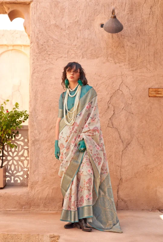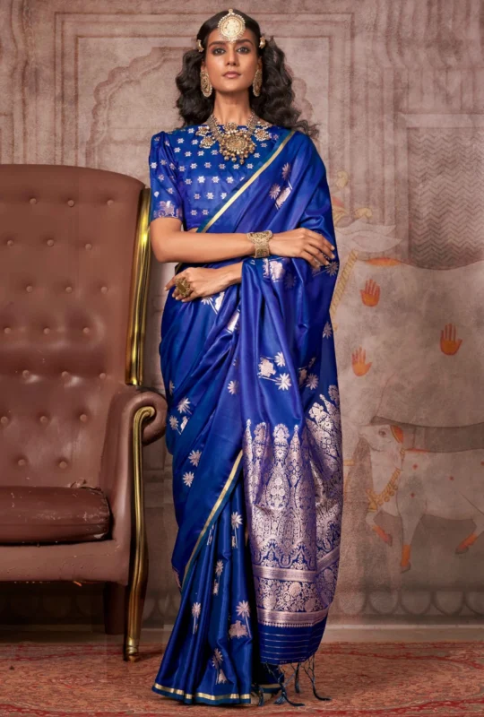 ₹3,499Blue Floral Luxe Zari Weaving Satin Banarasi Silk Saree