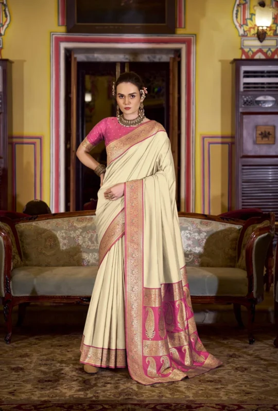 ₹3,795Cream Luxury Soft Banarasi Silk with Golden Zari Grandeur Saree