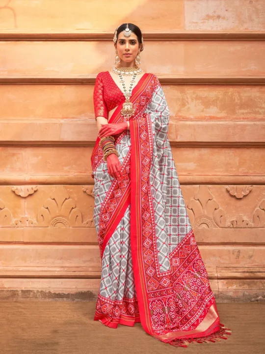 Santas Grey Printed Patola Saree