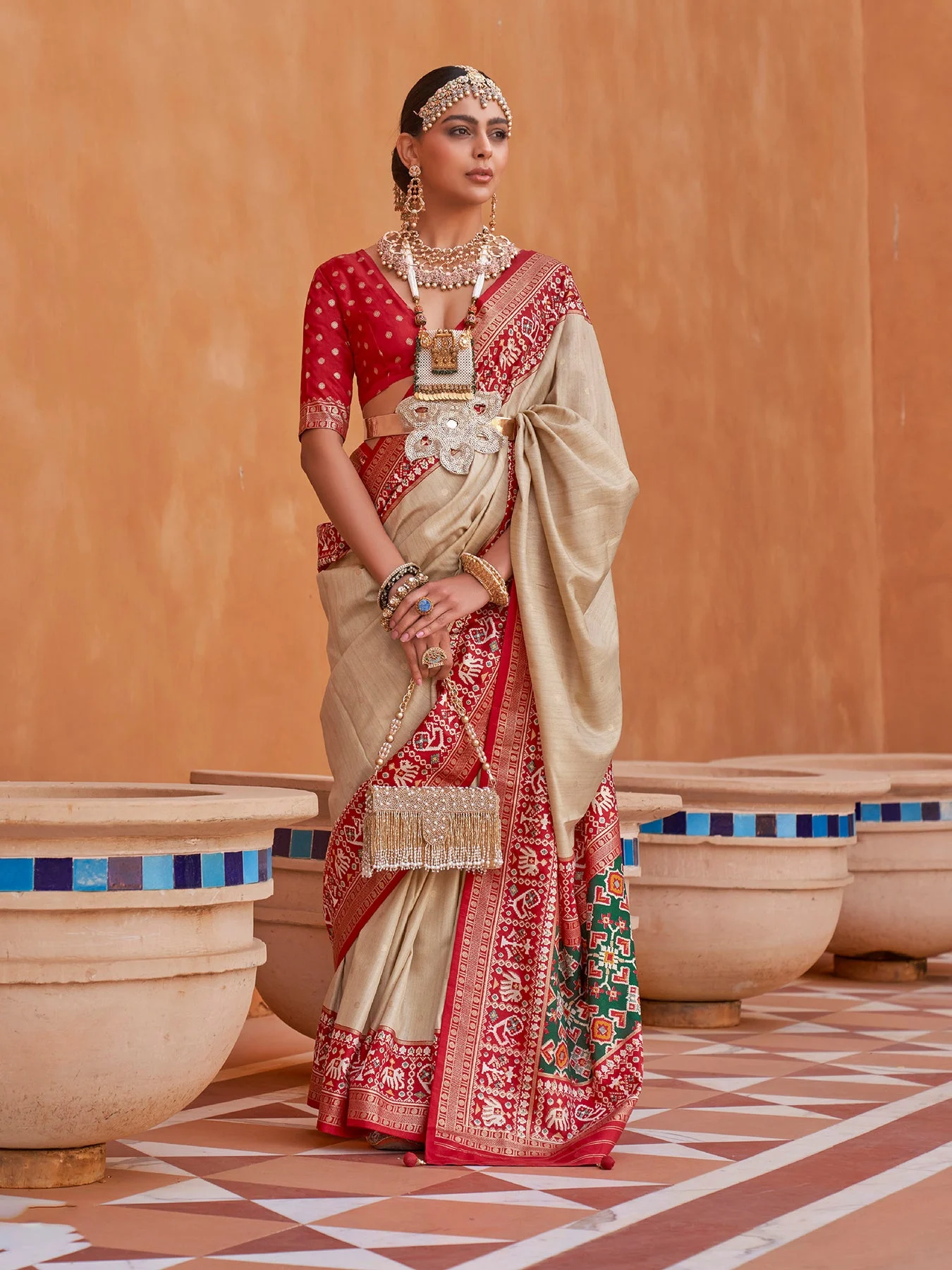 Beige Woven Designer Luxury Patola Silk Saree