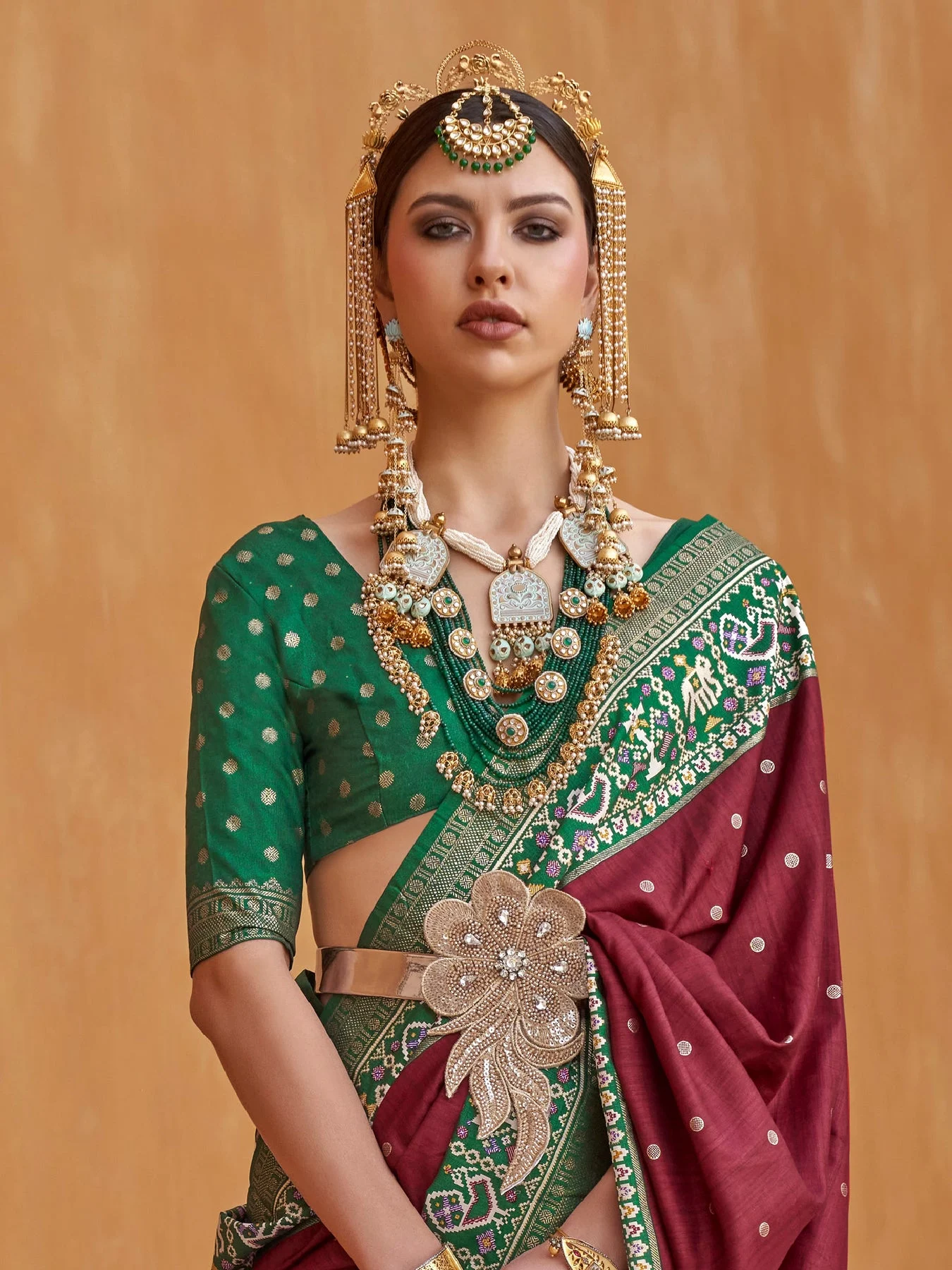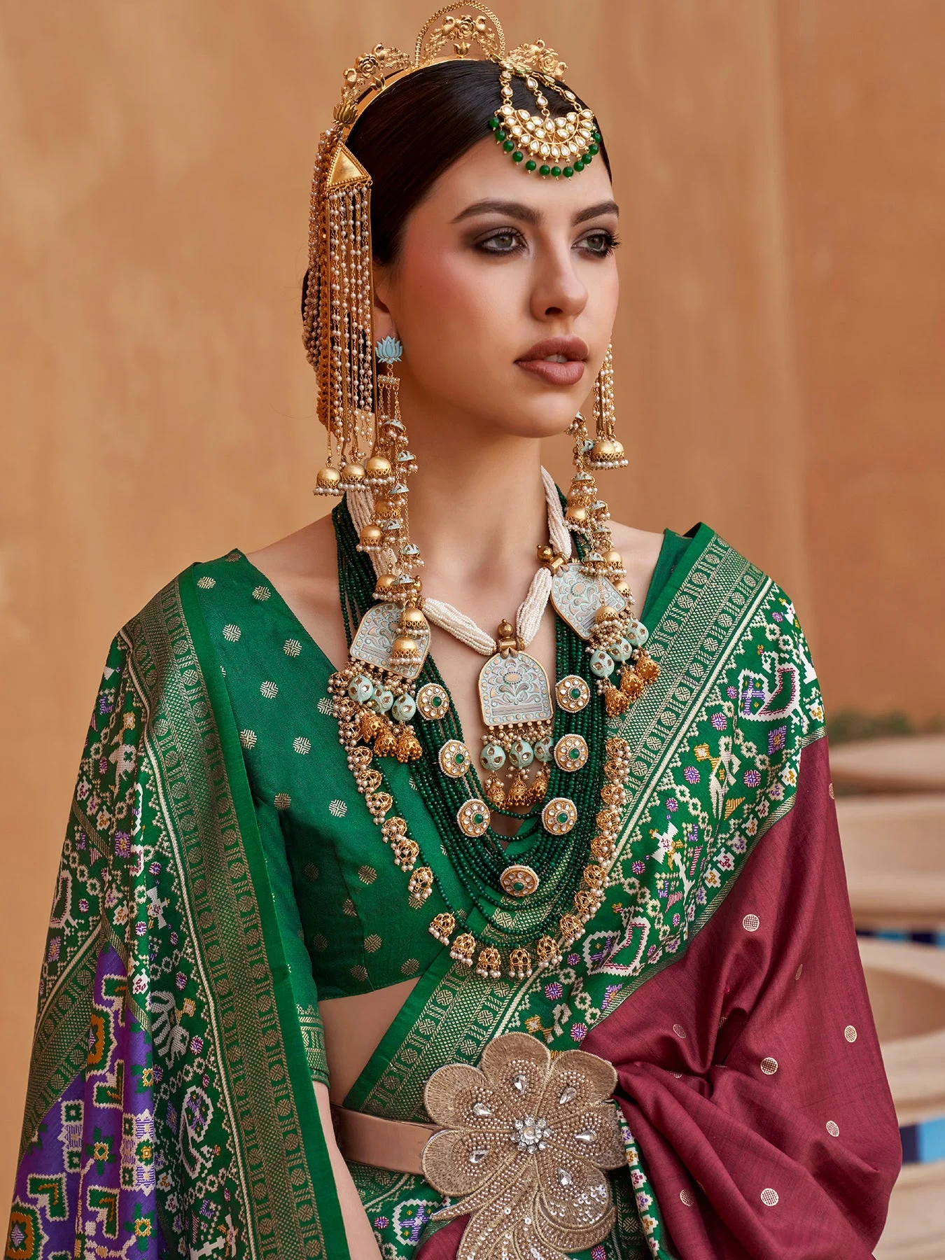 Dark Maroon Woven Designer Luxury Patola Silk Saree