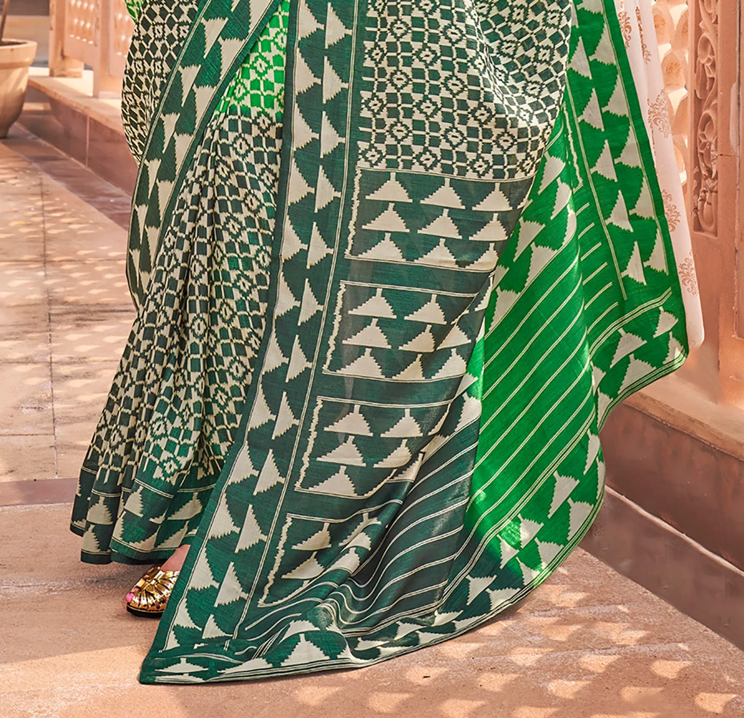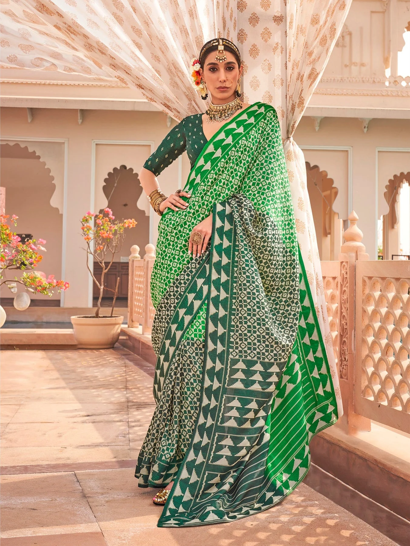 Refresh your saree collection with this vibrant Green Sigma Silk Saree designed with traditional-inspired Patola print.