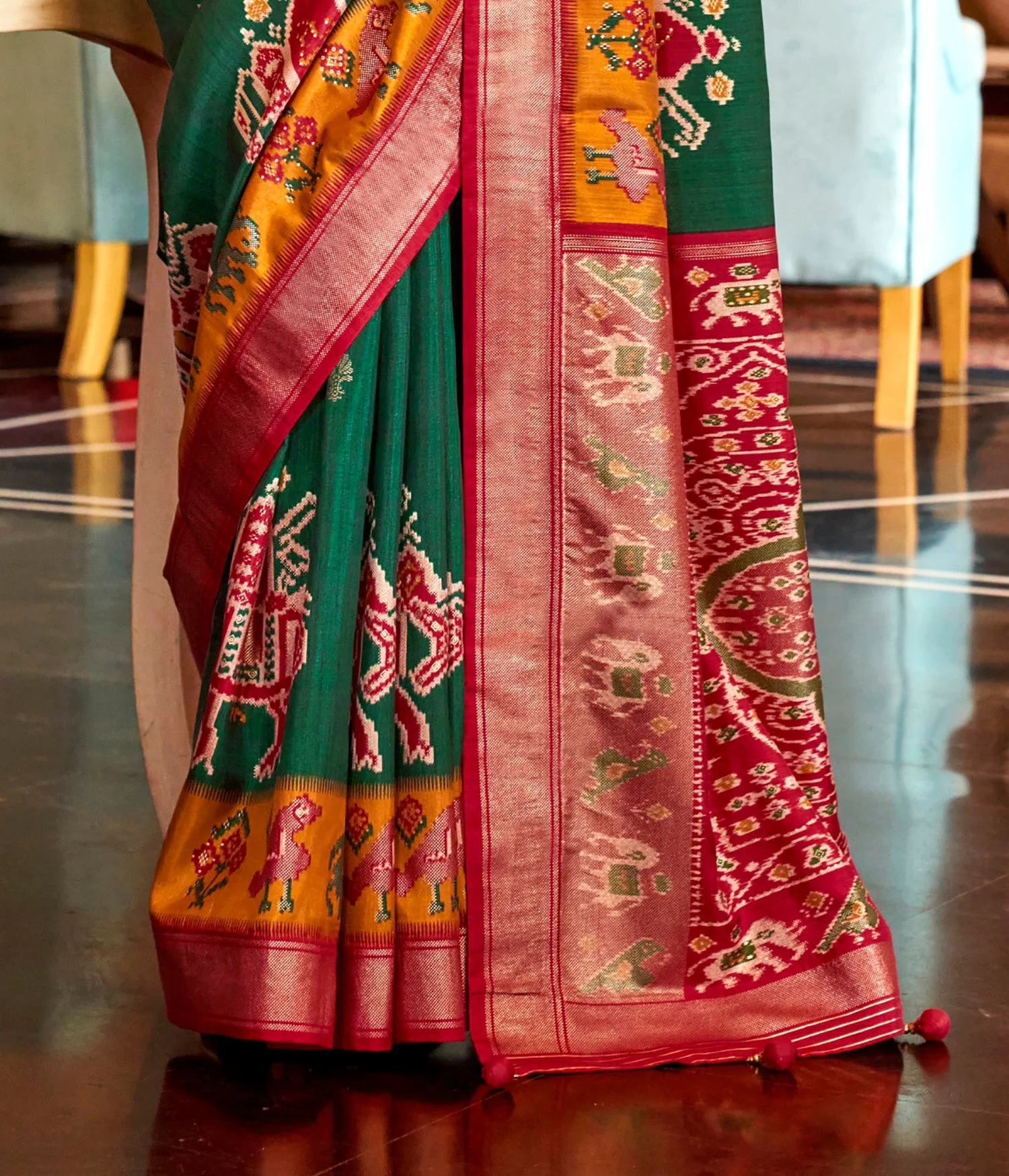 Crafted in luxurious Patola Silk, this Indigo Blue Woven Designer Saree features intricate woven motifs and a soft, premium drape—perfect for weddings, festive and ethnic occasions.