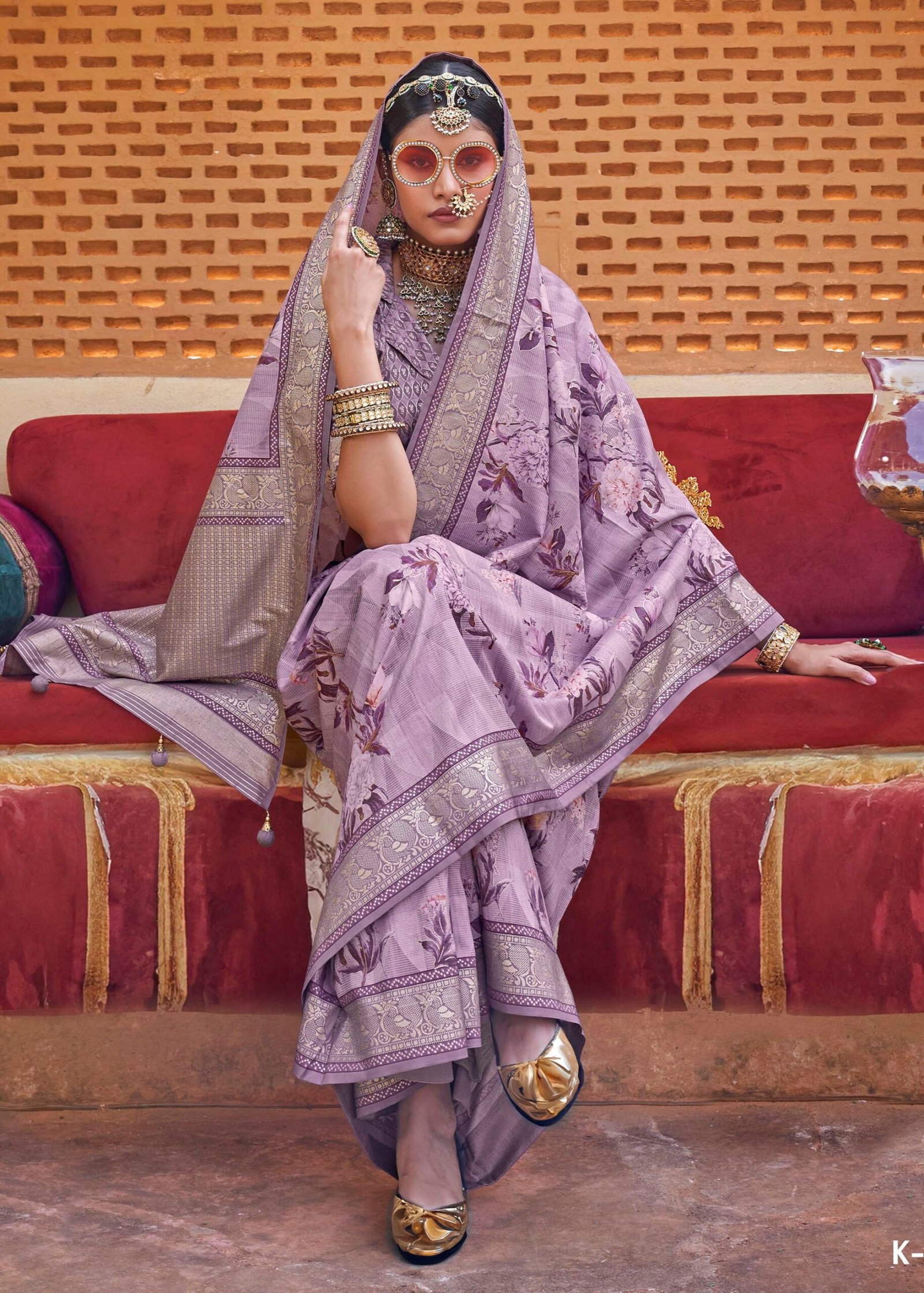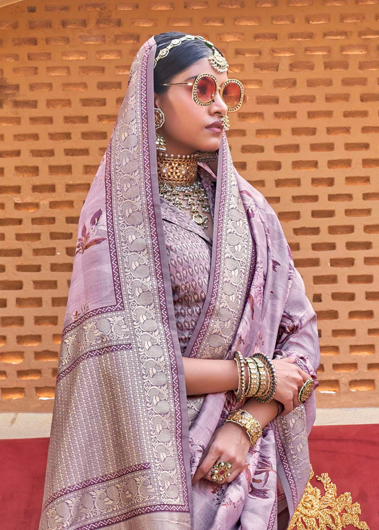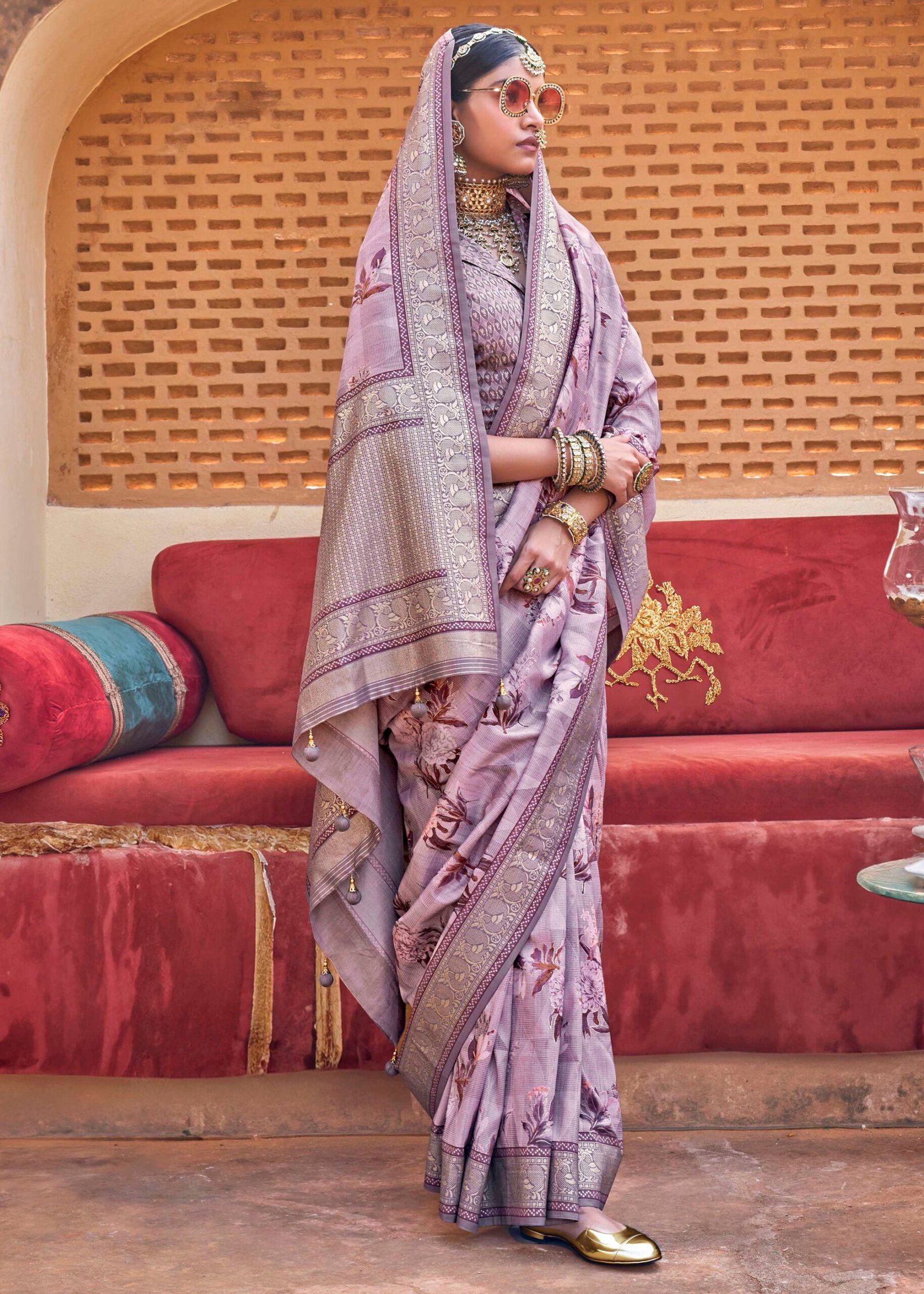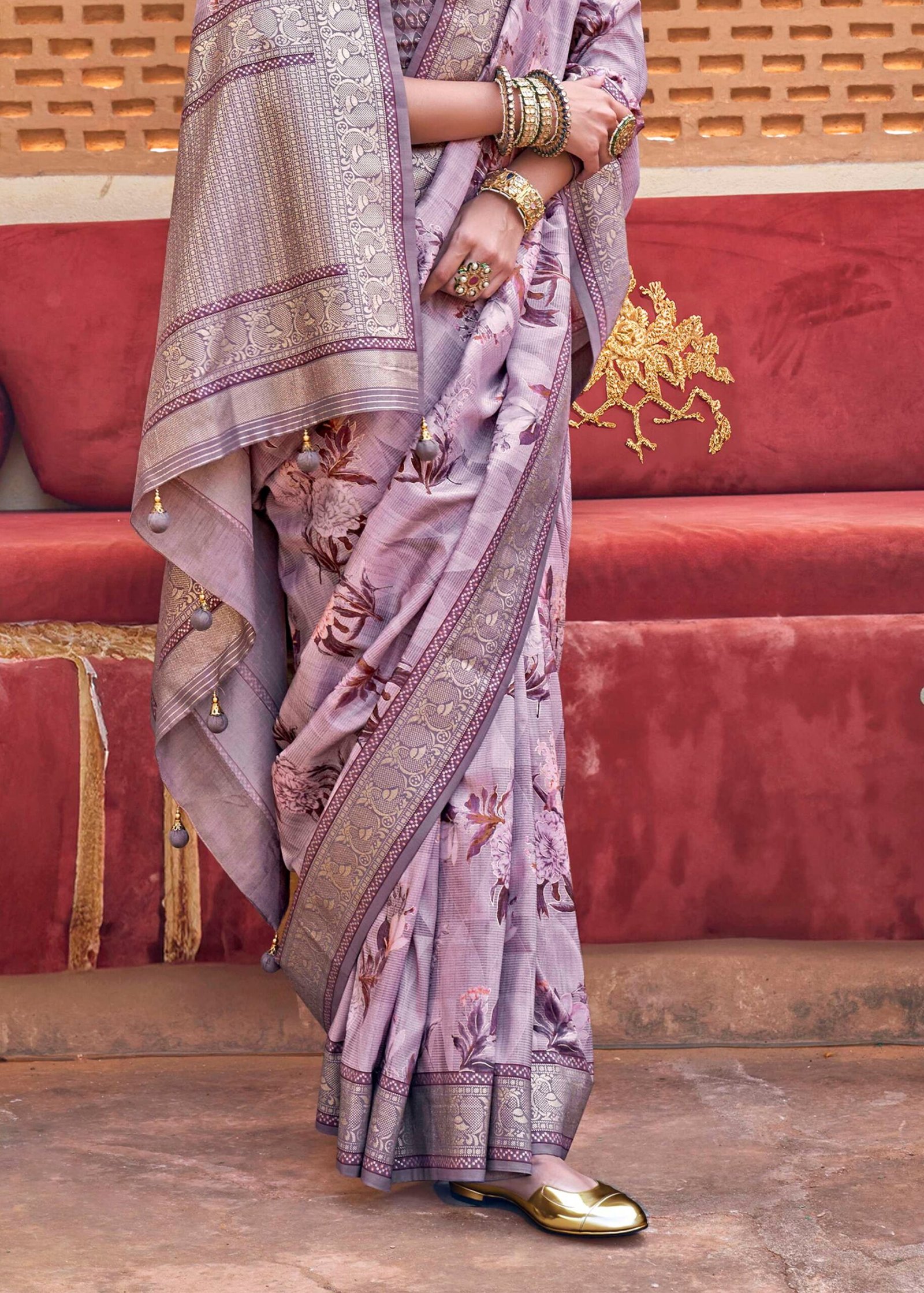 Lavender Purple Luxe Floral Printed Silk Saree