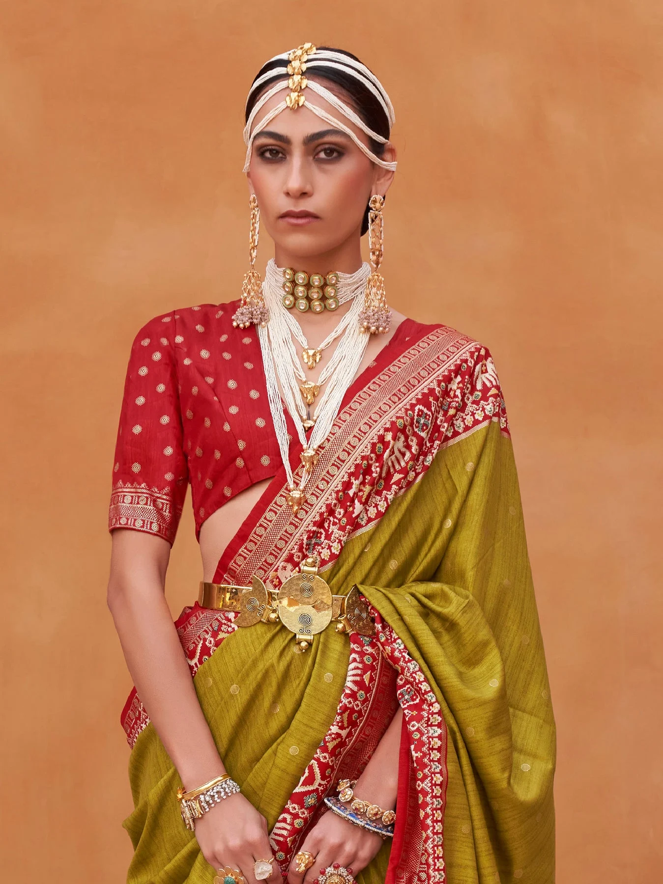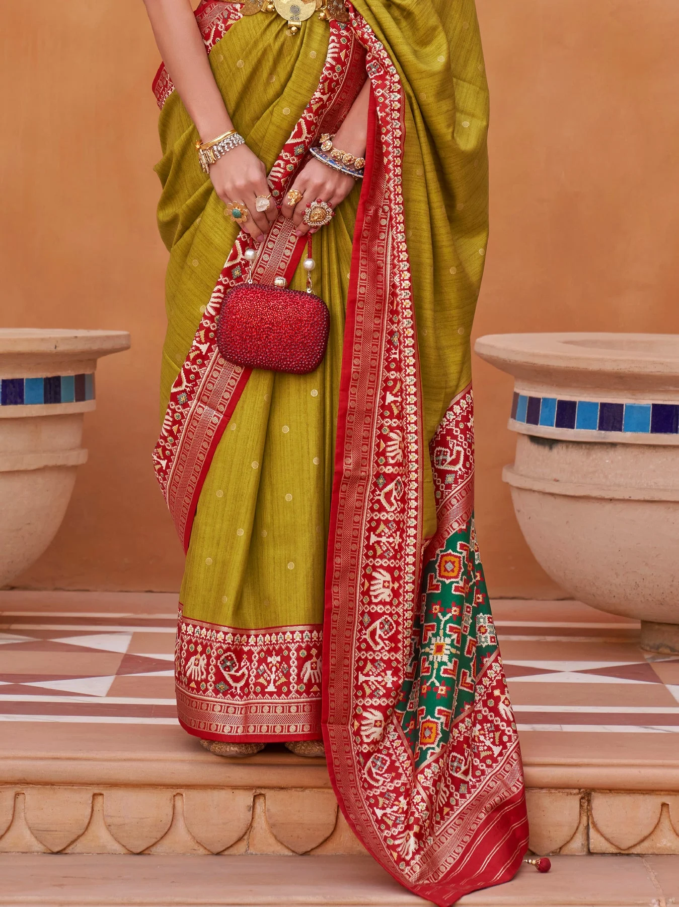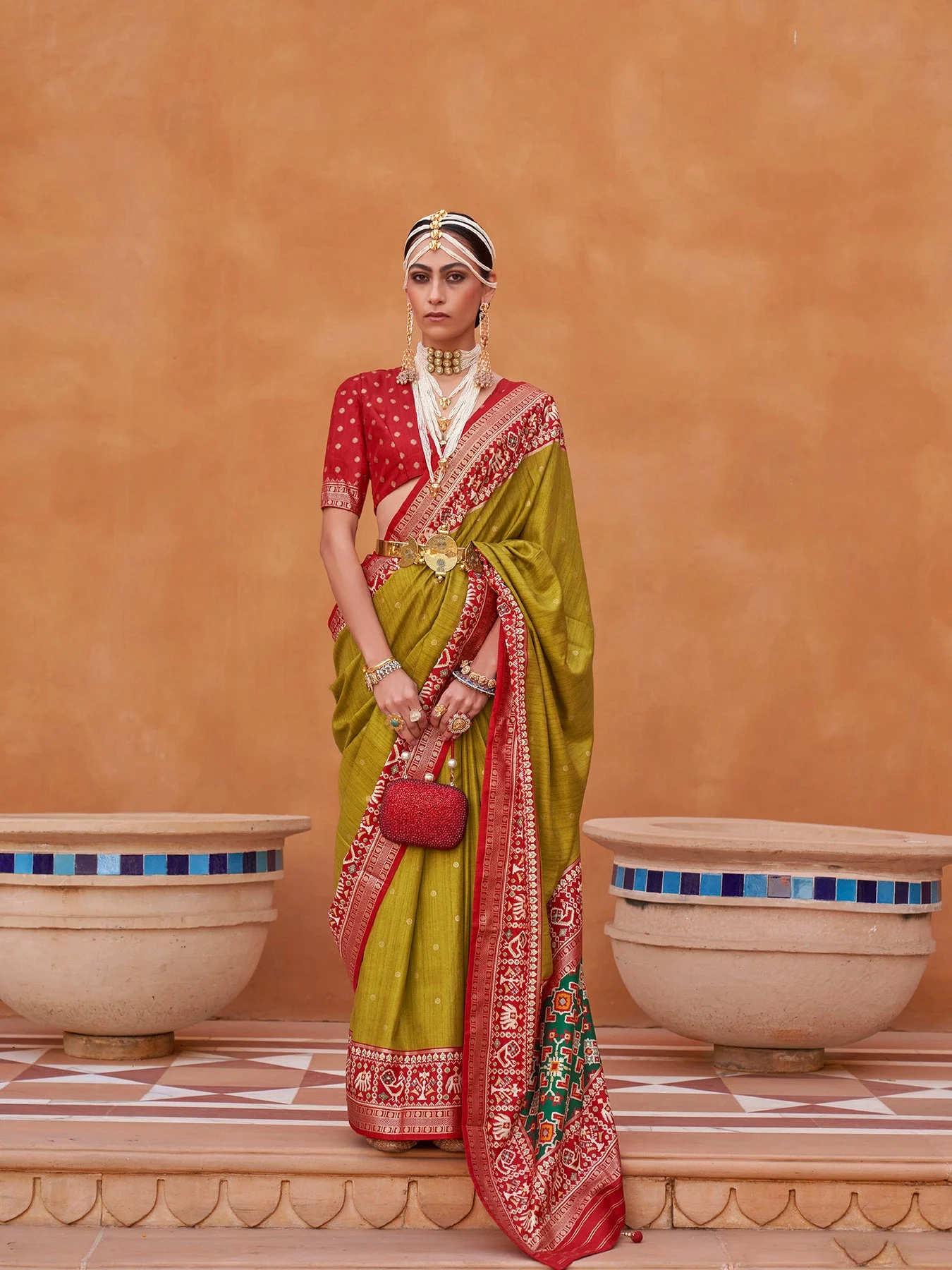 Mehendi Green Woven Designer Luxury Patola Silk Saree