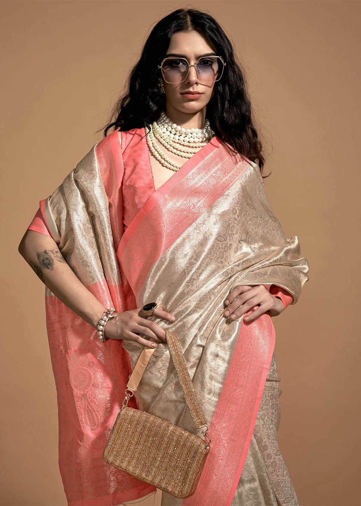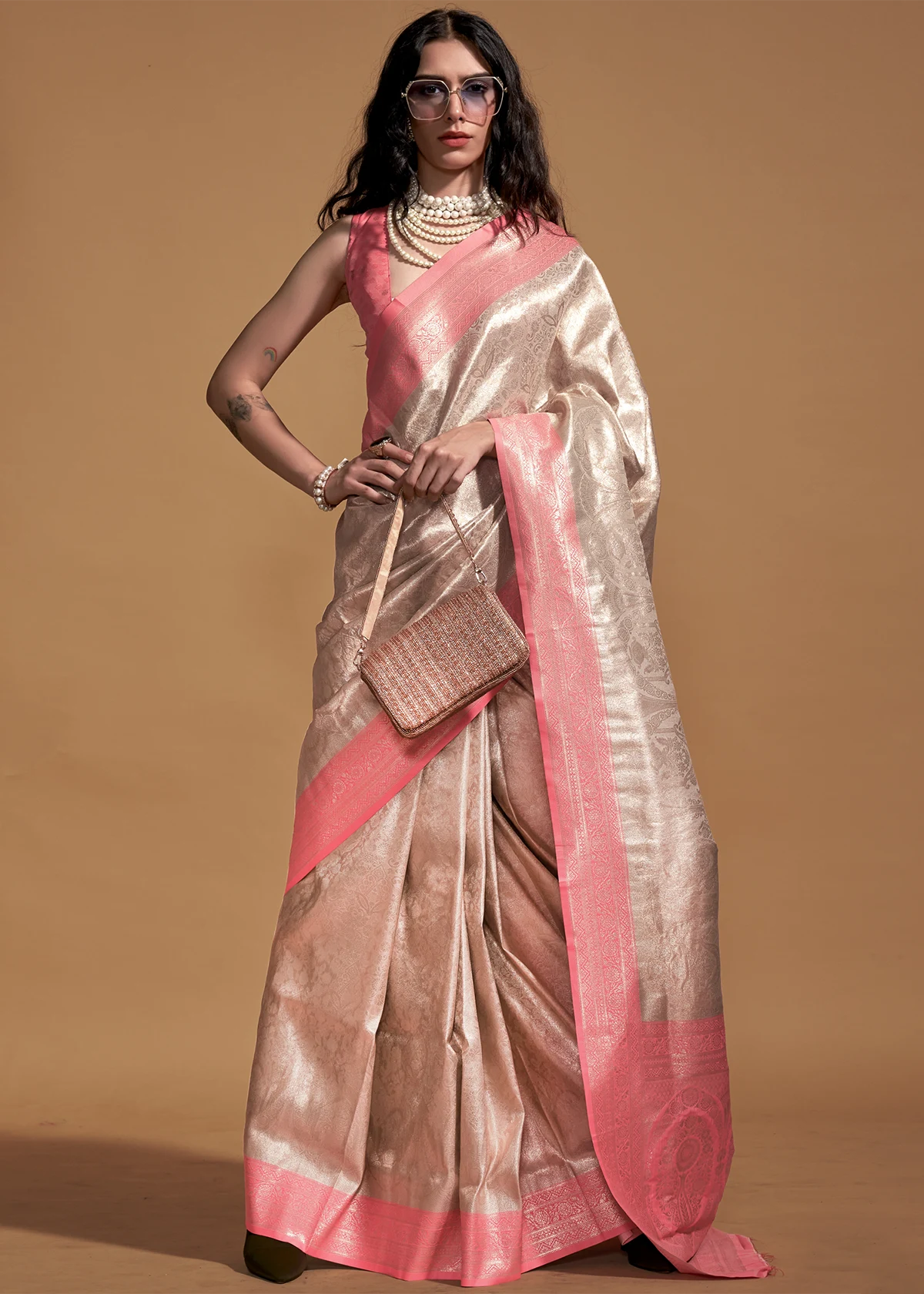 Peach and Beige Luxe Kanjivaram Saree