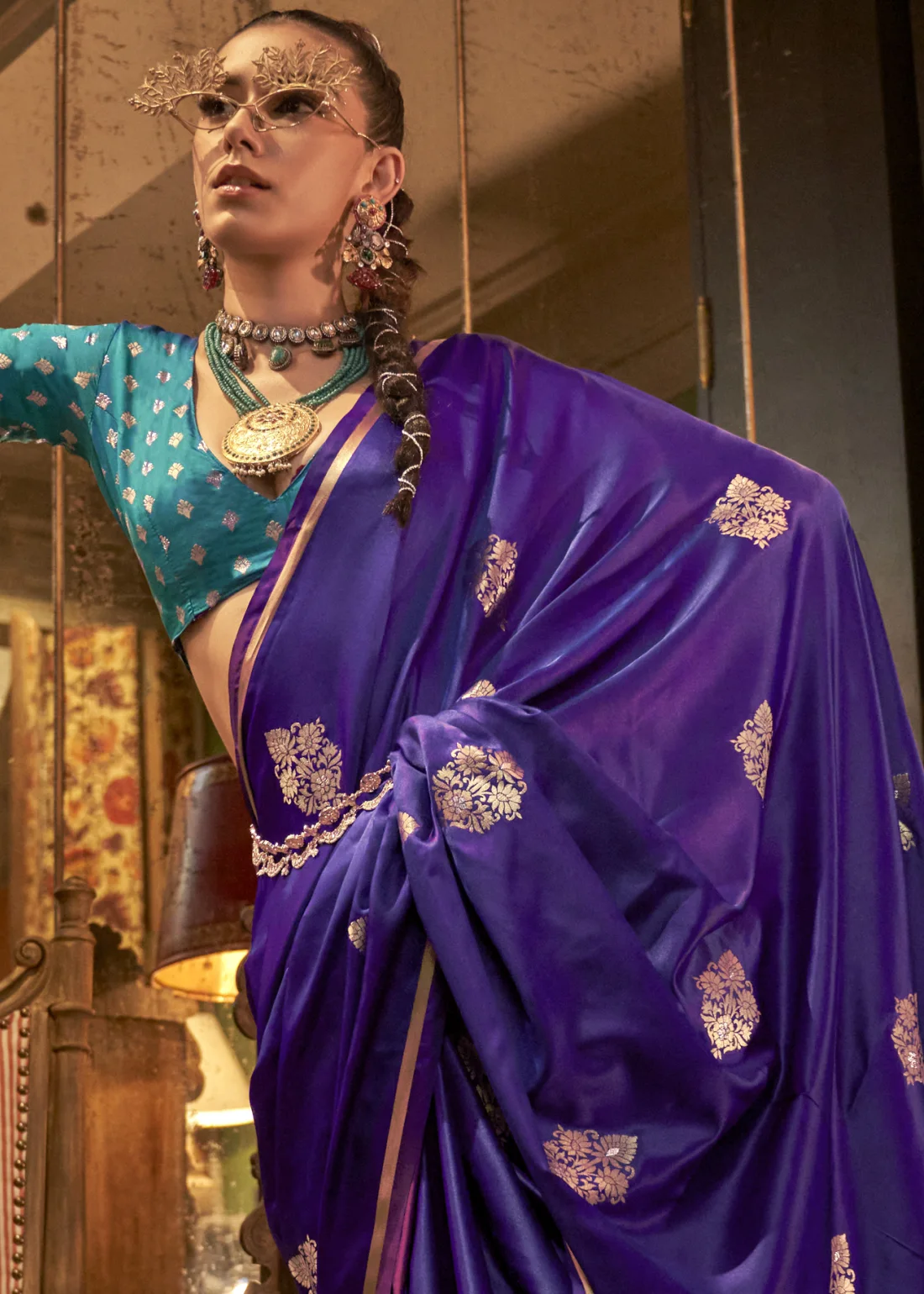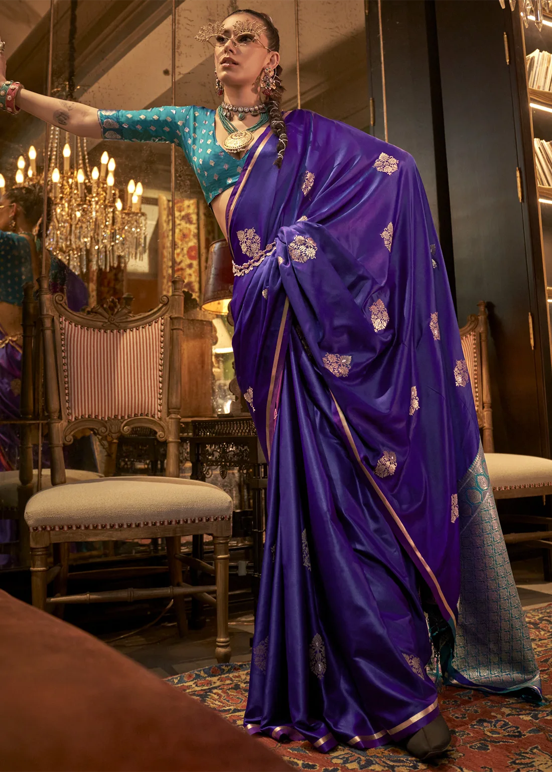 Purple Luxe Banarasi Satin Silk Saree