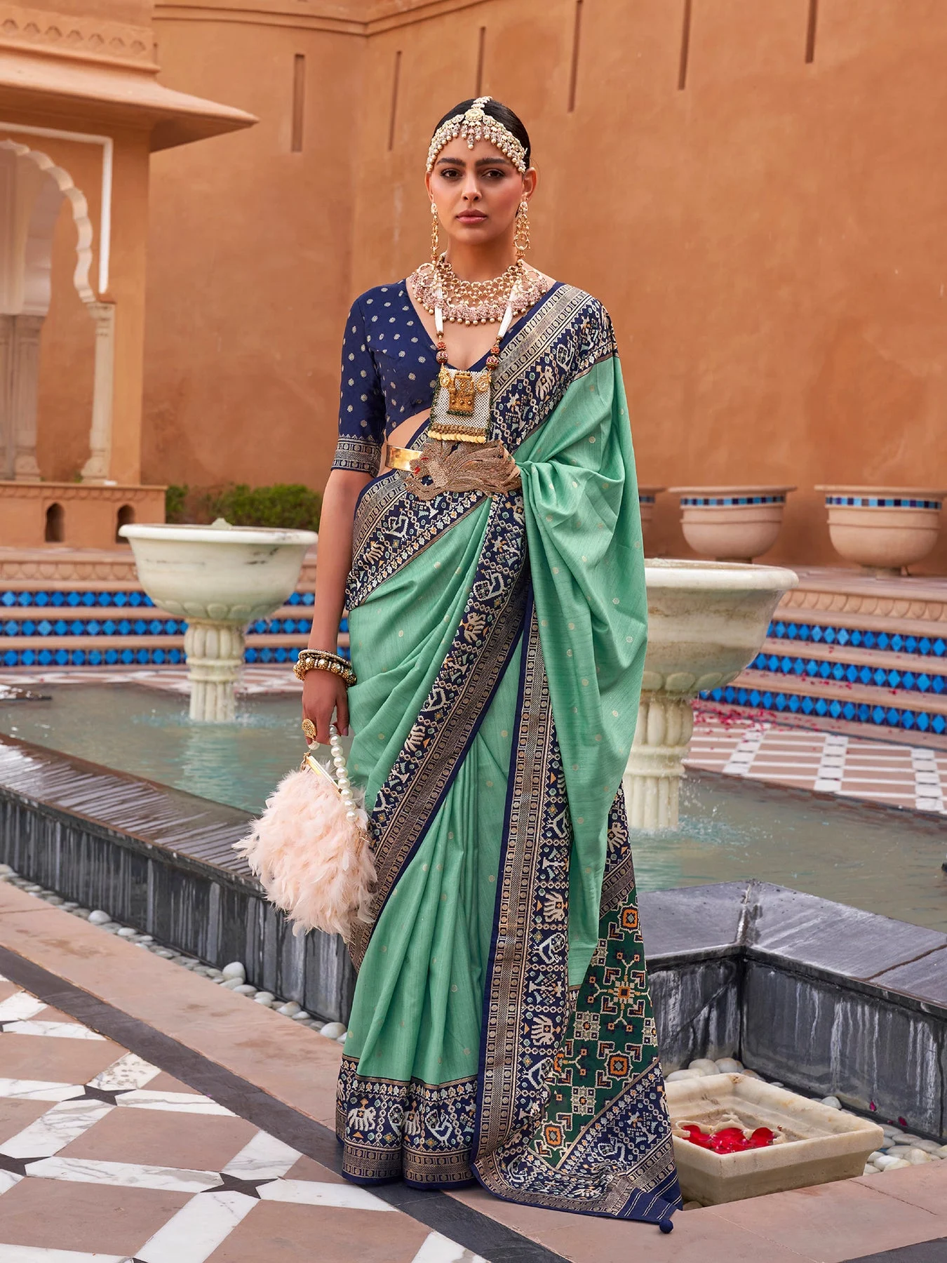 Sea Green Woven Designer Luxury Patola Silk Saree
