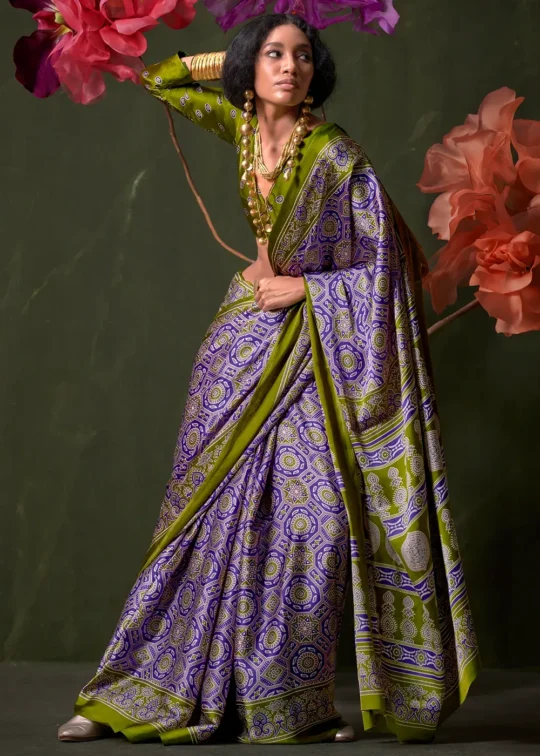 ₹4,554Olive Green Printed Satin Crepe Silk Saree