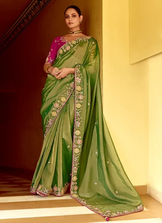 ₹7,582Green Crush Silk Sequins Embroidered Border Saree