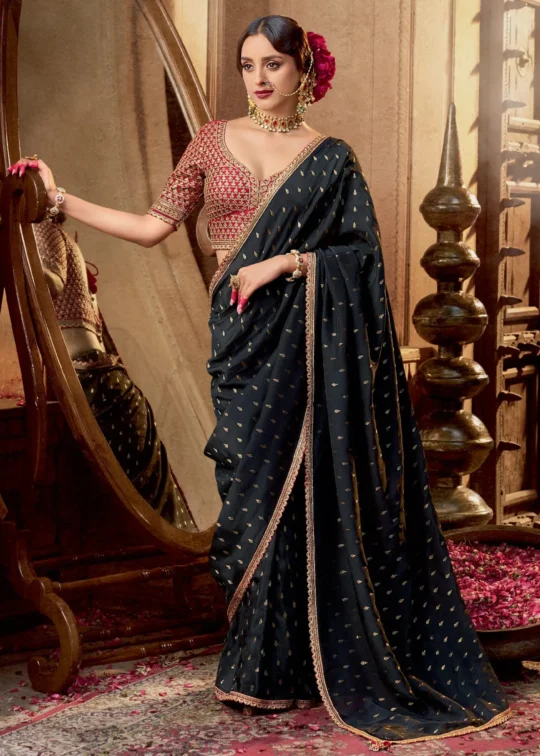 ₹4,400Midnight Black Banarasi Silk Saree with Maroon Blouse