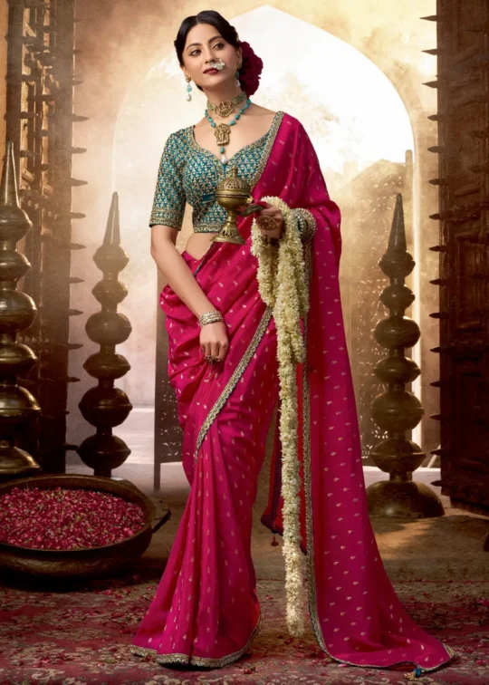 ₹3,980Rani Pink Banarasi Saree with Teal Blue Blouse