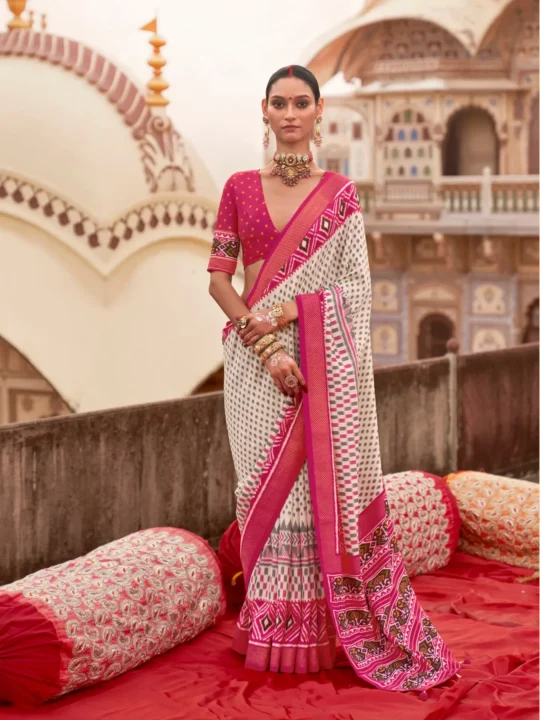 ₹2,990Pink Polyester Viscose silk Patola Printed Saree